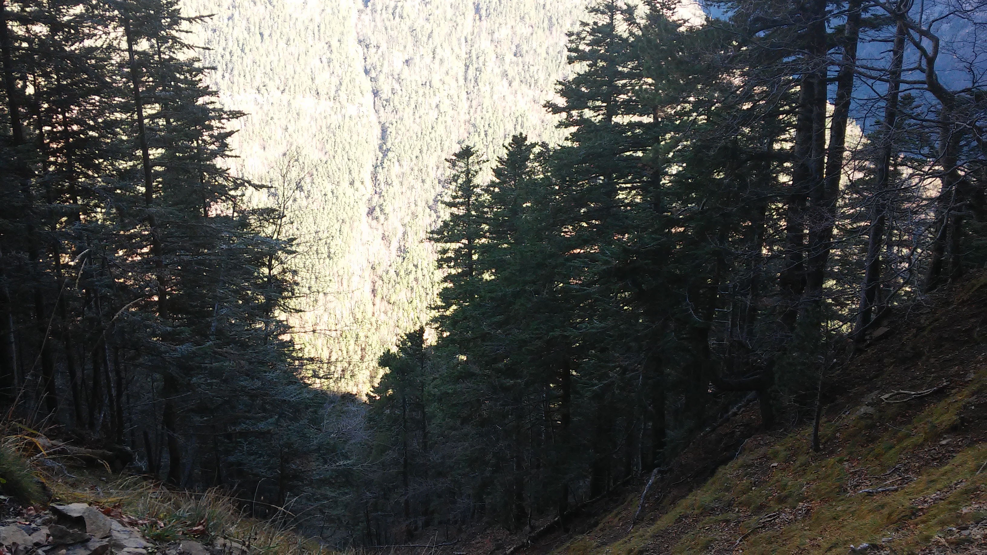 Como he comentado, el camino aquí es complicado por la inclinación, aunque la mayor parte del tiempo no da sensación de vértigo dado que al transcurrir por bosque, no parece que estemos muy elevados.