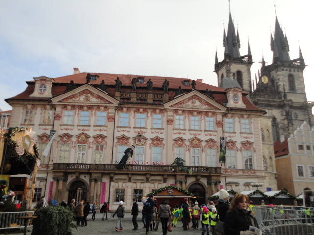 Cuando terminamos, y siendo ya casi hora de comer, fuimos a uno de los típicos mercadillos navideños con casetas y puestecillos de comida y vino caliente. Mucha gente, mucho fresco y muchos perritos calientes. También aprovechamos para ver el reloj astronómico y la “ceremonia” que realiza cada hora en punto, ver la Narodni Gallery, el Rudolfinum…