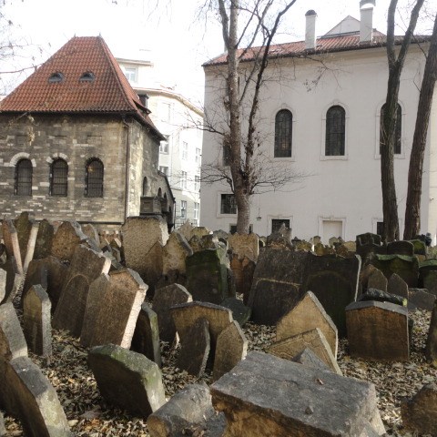 Y por supuesto, el cementerio judío, que erróneamente hay quien piensa que es donde los judíos asesinados por el nazismo están enterrados (¿acaso se preocupaban de eso?), sino que era el único lugar donde se permitía enterrar a los judíos en Praga durante más de 300 años (allá por el s.XV), de ahí que, al no haber espacio suficiente, estén unas lápidas sobre otras y mucha gente enterrada junta.