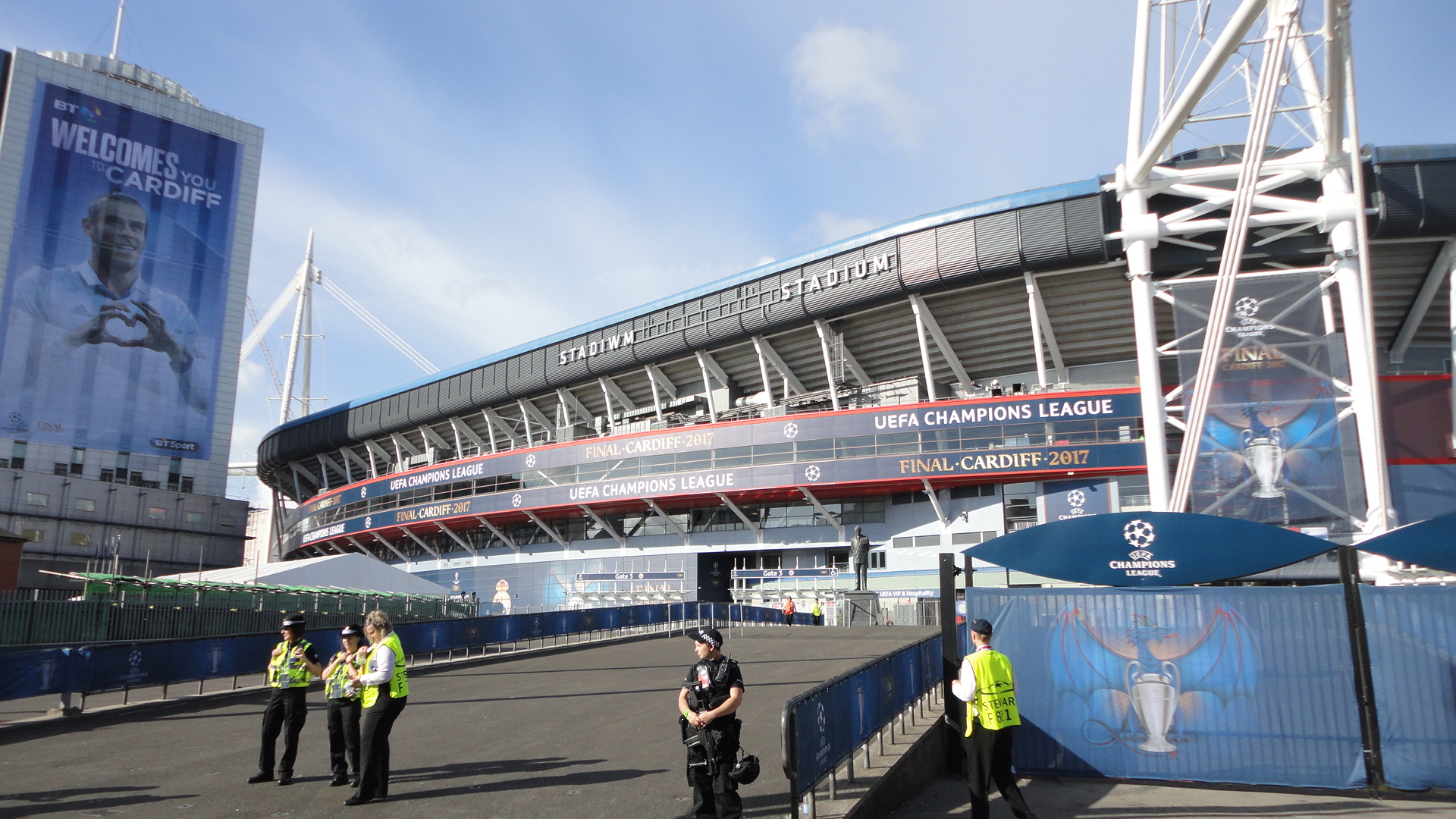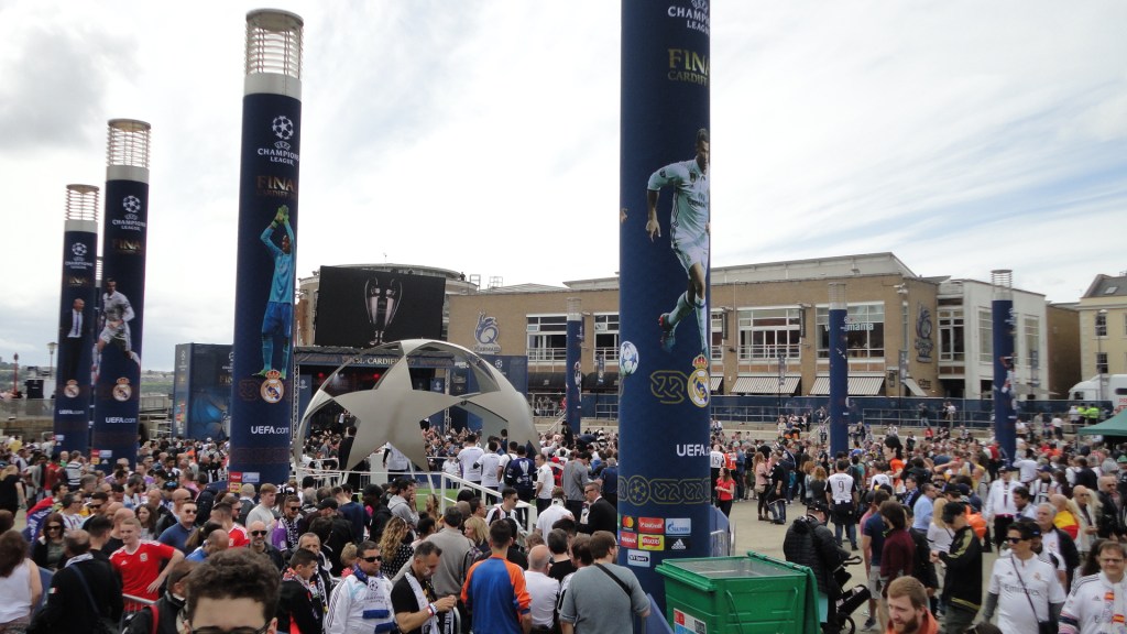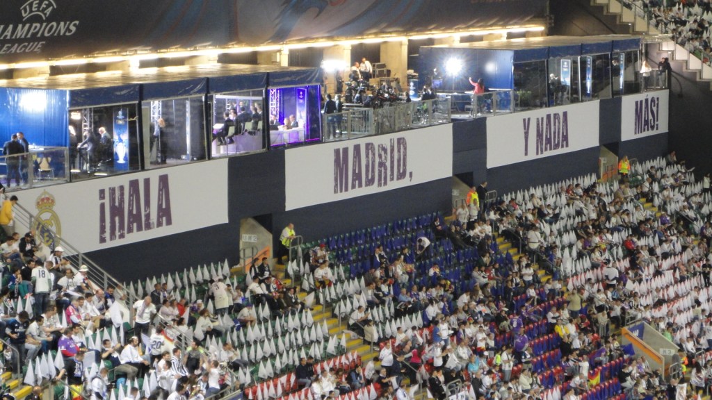 Mucha seguridad, mucho control para pasar, mucha revisión de bolsas y mochilas hasta que entramos. Con actuación de apertura de Black Eyed Peas incluida pudimos disfrutar de un partidazo y ver cómo el Real Madrid se traía la duodécima Copa de Europa a casa 🙂