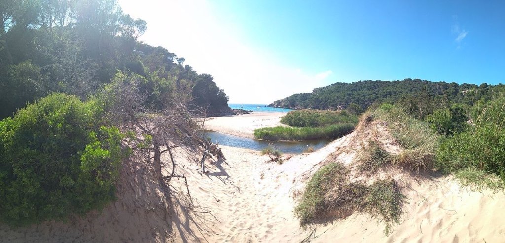 - Playa Algaiarens: De fácil acceso, hay un par de parkings para dejar el coche (en la carretera te avisan si están cerrados). Desde ahí hay que bajar un bonito sendero. La arena es blanca, más típica de las playas del sur, y está bastante protegida del viento. Dividida en dos, Cala des Bot y cala Tancats. Acercarse a des Bot merece mucho la pena, entre juncos y pinos (por cierto, es playa nudista).