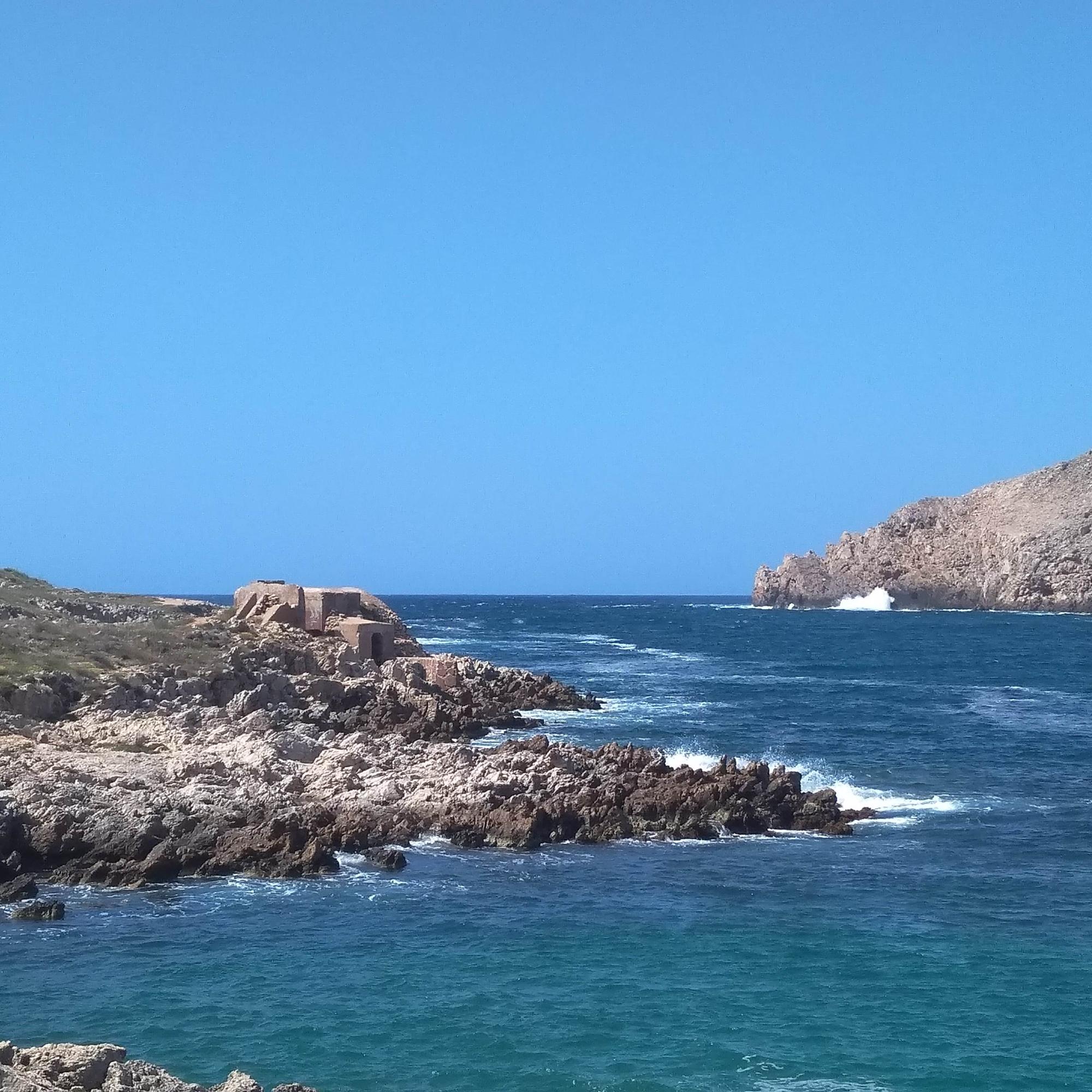 - Cala Morell: Esta playa sólo la visitamos de pasada, al ir a ver la necrópolis, pero si el día hubiera acompañado nos hubiésemos quedado a dar un baño. Tiene un arenal no muy grande, y luego diversas plataformas de piedra y algunas de hormigón abiertas a mar profundo. Y lo principal, un paisajazo.