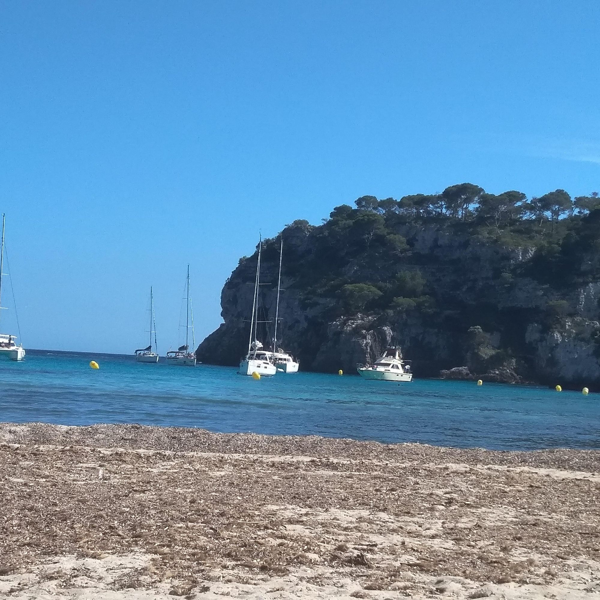- Playa Son Saura: Es la playa a la que va la gente que no puede entrar a cala turqueta. Digo esto porque son playas con parking y el primero que se llena es el de Turqueta. La arena es blanca pero tiene bastantes algas.